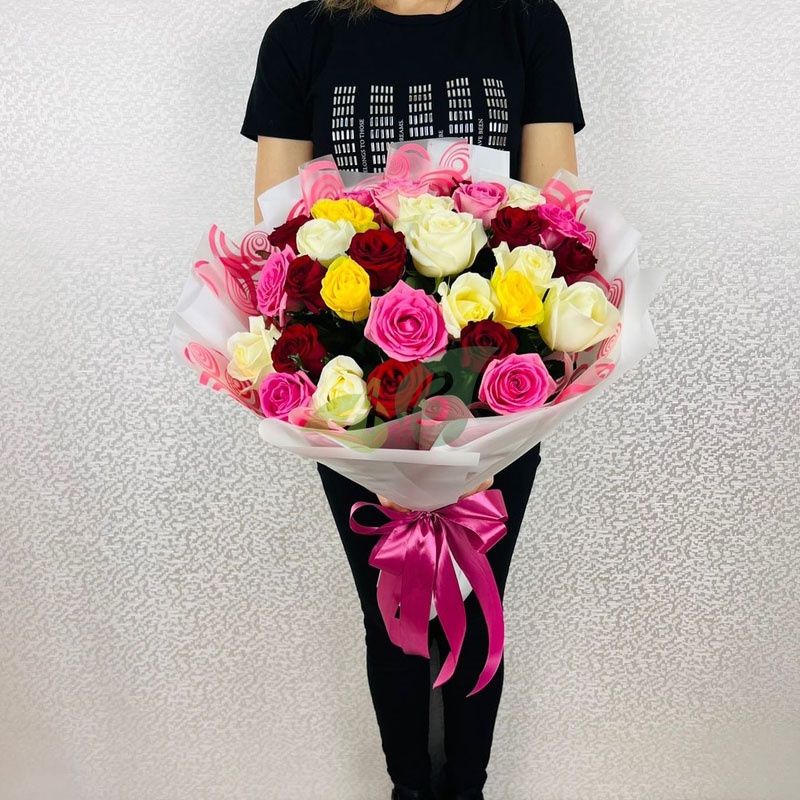 Разноцветный микс из роз – это только свежие живые цветы в классической композиции от 15 до 45 штук или в огромных букетах от 51 до 101 розы.