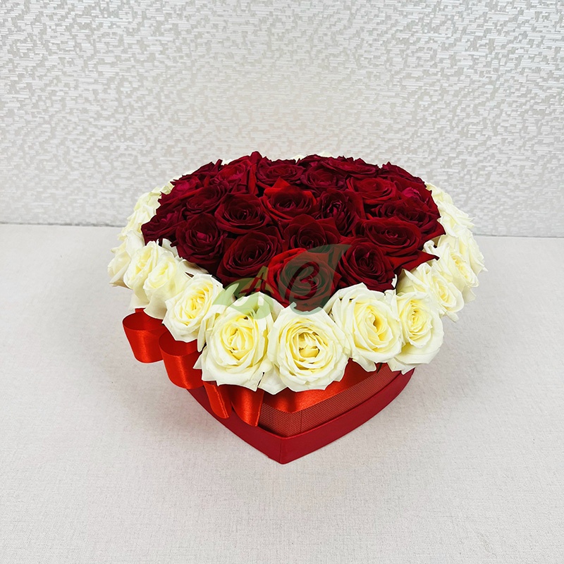 Если дарить цветы в коробке на праздник, то, несомненно, заказывать розы. Доставка этой шикарной композиции из красных и белых роз будет бесплатной по Медногорску.
