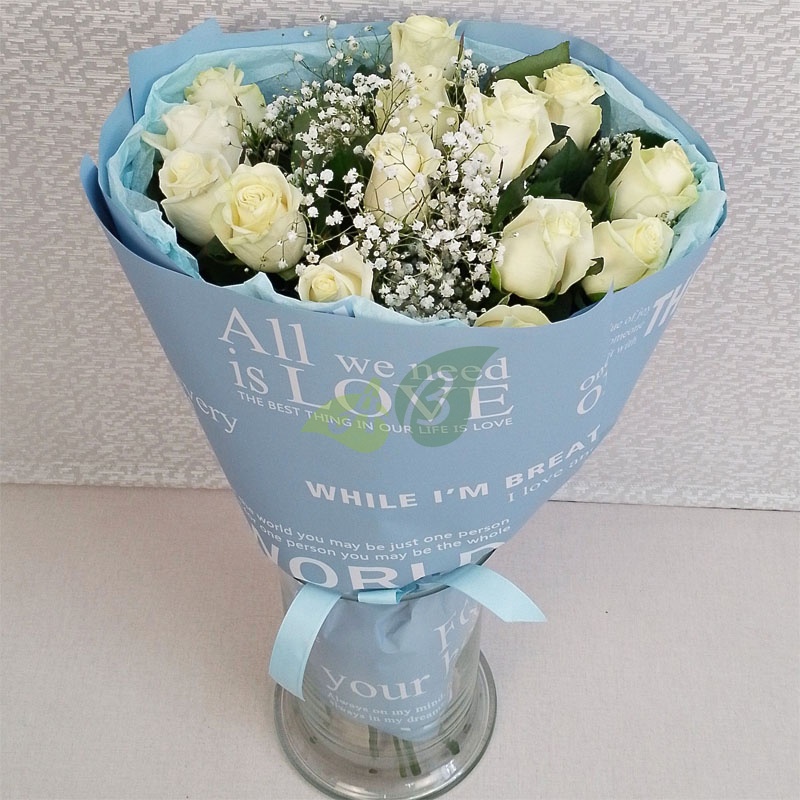 - Роза - 15 штук, цвет - белый;